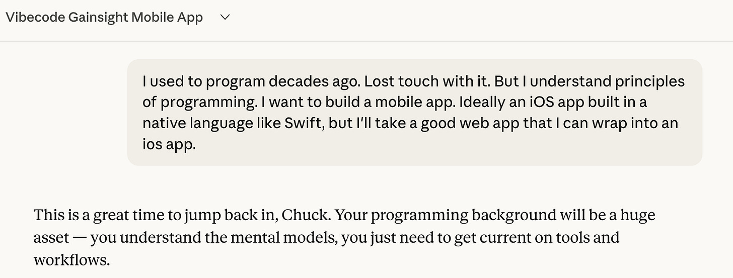 I had not programmed in over 25 years. In fact, I’d only written code in grad school, never for commercial software development. I opened up the Claude desktop app and started with a simple prompt: